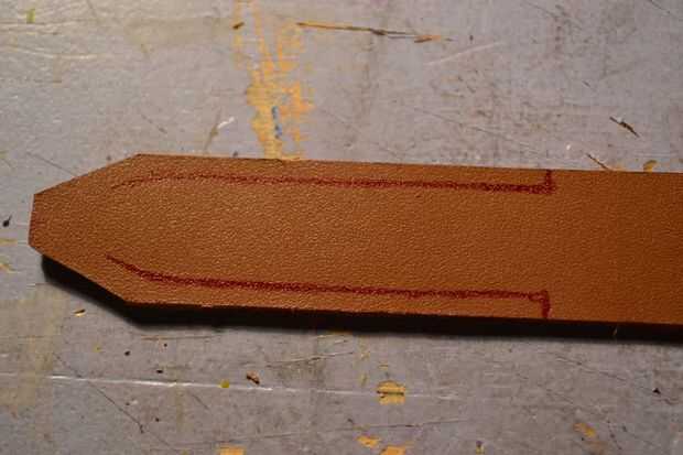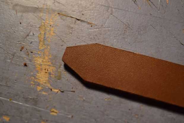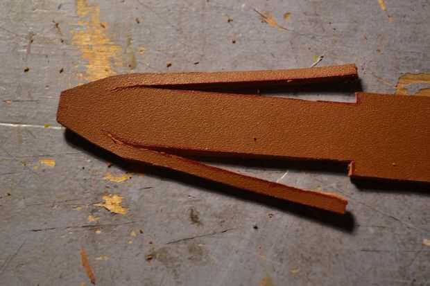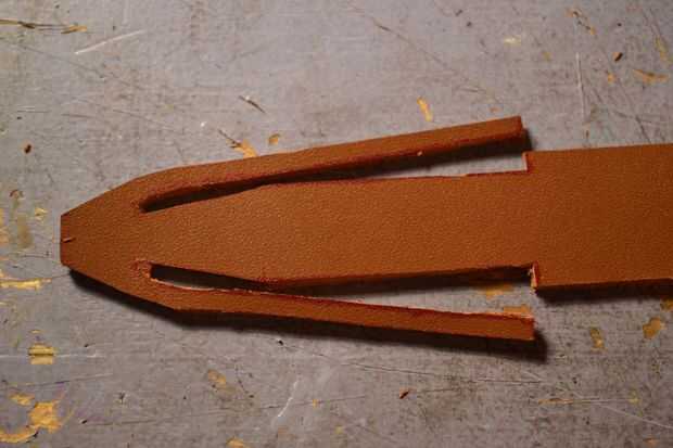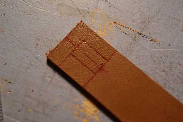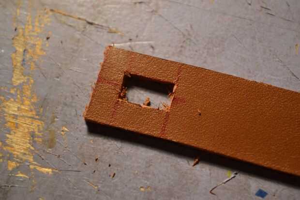 Otra vez, usando una hoja de afeitar cortar el cuero como se muestra en las fotos y luego conectar los dos extremos
