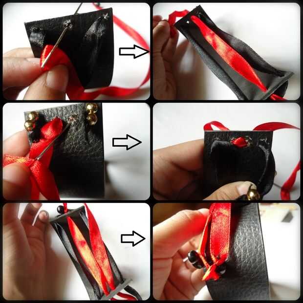 Ahora otra vez Inserte en el agujero siguiente y páselo a través de orificio central otra vez (lado con 3 agujeros). Atar los granos al final.