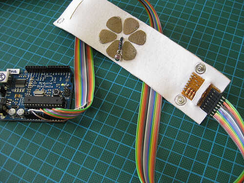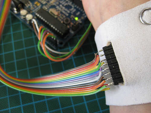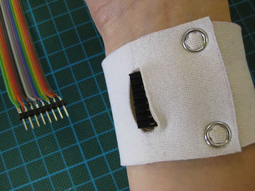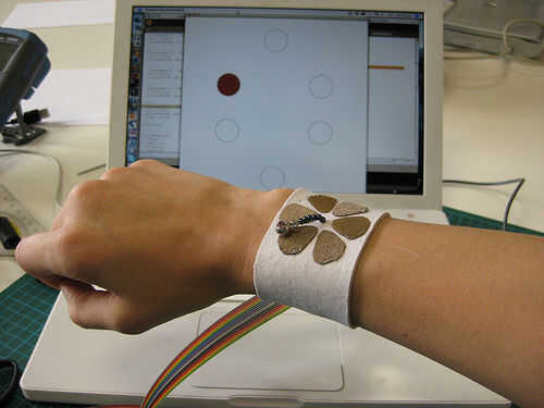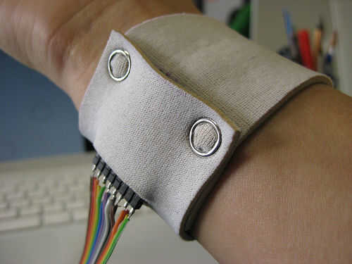 el tiempo de detección de pulsera es un potenciómetro de tela. Seleccione el tiempo deseado del día haciendo contacto en la correspondiente posición en su muñeca - donde normalmente sería su reloj.No hay ningún punto a él pero divertido.Actualización