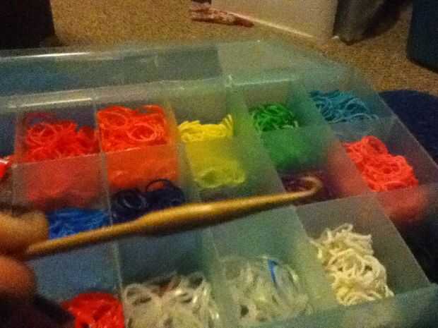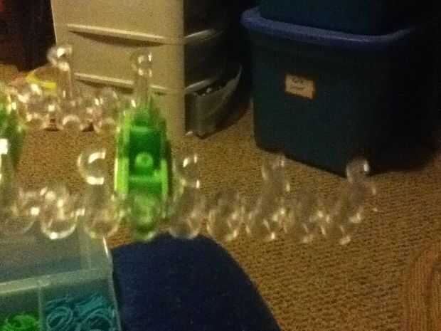 Paso 1: Obtener las herramientas Necesita su telar del arco iris, 2 colores de bandas de goma, un clip de c y un gancho.Paso 2: a partir de Una banda de goma en los dos pasadores de la torcedura. Y hacerlo otra vez con otra banda elástica.Paso 3:Gire