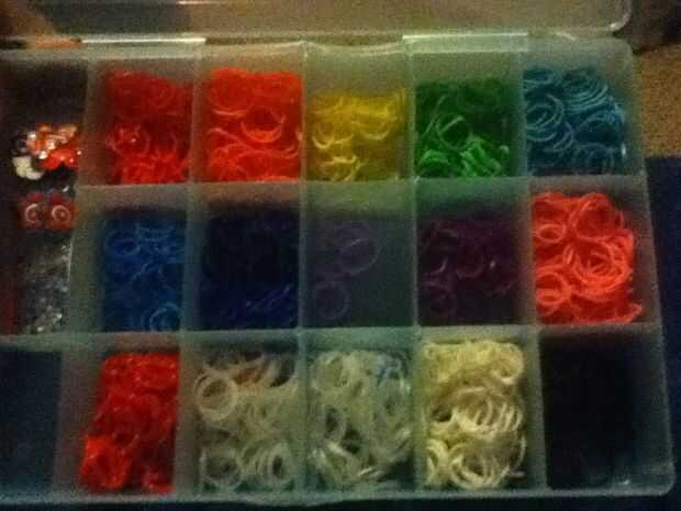 Aquí es como luce la pulsera de dragón escala. Esto es una pulsera de 8 peg. Yo estoy mostrando es una pulsera de 6 peg. Usted puede hacer que sea 4,6,8,10 y 12 clavijas de largo.Paso 1: Los artículos que necesitará Se necesita:telar del arco 1 iris1