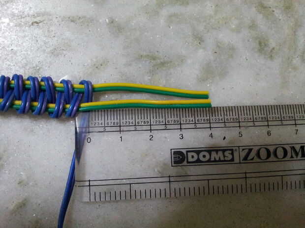 mantenga girando el azul cable hasta un espacio de 4 cm izquierda del extremo.