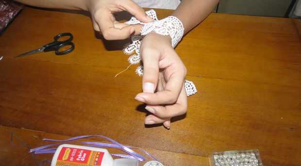 este es una cómo para coser una pulsera de encaje. Se señaló a mí más tarde que esto podría también utilizarse como un beb這 tapa de s. Por favor tenga cuidado con la aguja de costura y tijeras. Este Instructable es en mi sitio Web. ¡ Disfrute! -Oh