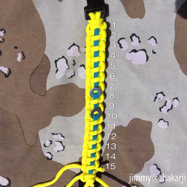 No importa cuánto la pulsera, sólo tiene que colocar las arandelas en el medio, dejando el nudo 1 y el espacio entre las arandelas de