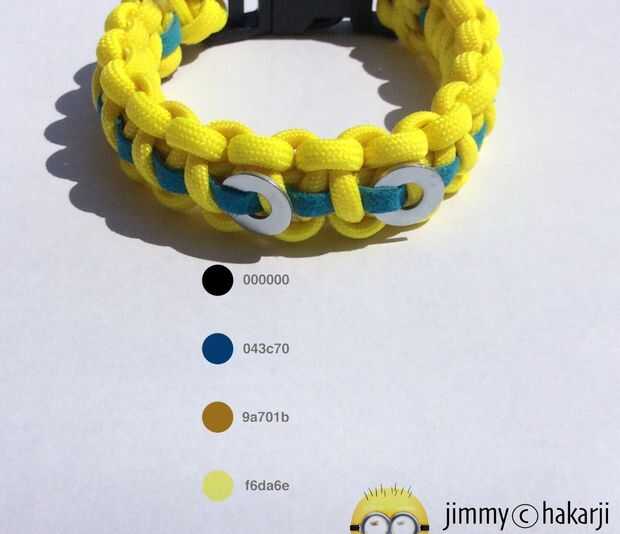 Usted puede hacer un minion 1 ojo, pero quisiera recomendar una arandela más grande, coloque en el centro de la pulsera