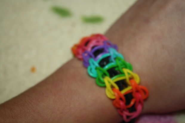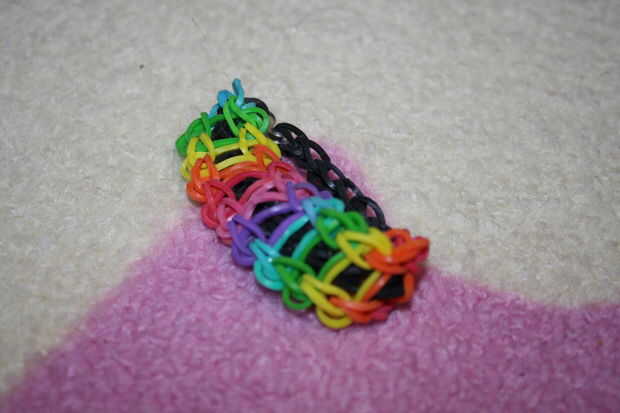 Paso 1: Obtener las herramientas Necesita su telar del arco iris, 2 colores de bandas de goma, un clip de c y un gancho.Paso 2: a partir de Una banda de goma en los dos pasadores de la torcedura. Y hacerlo otra vez con otra banda elástica.Paso 3:Gire
