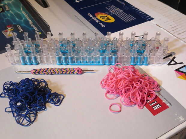 Paso 1: fuentes de Necesita un kit de inicio para el telar del arco iris y algunas elásticas.Paso 2: Colocar las bandas Iniciar colocando un color de borde y no empezar a poner encima de todo lo que tienes que hacer en los patrones.Paso 3: Colocar la