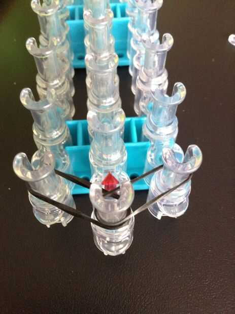 Paso 1: Lo que usted necesita Se necesita:• un telar• gomas• un gancho• un clip S o CPaso 2: Colocación de bandas Tome su primera banda y colóquelo a la izquierda. Luego tomar su segunda banda y colóquelo a la derecha. ASEGÚRESE DE QUE FLECHA TE ESTÁ