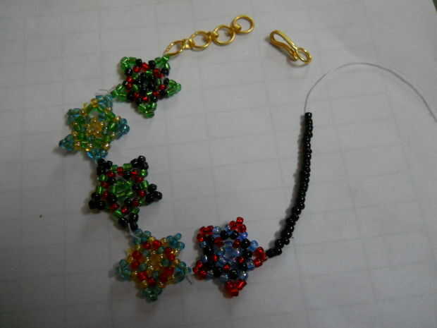 Si tienes suficiente estrellas, poner otro extremo del cierre de la última estrella, o lo contrario agregar alguna extensión como yo lo hice y conectan otra parte del broche.