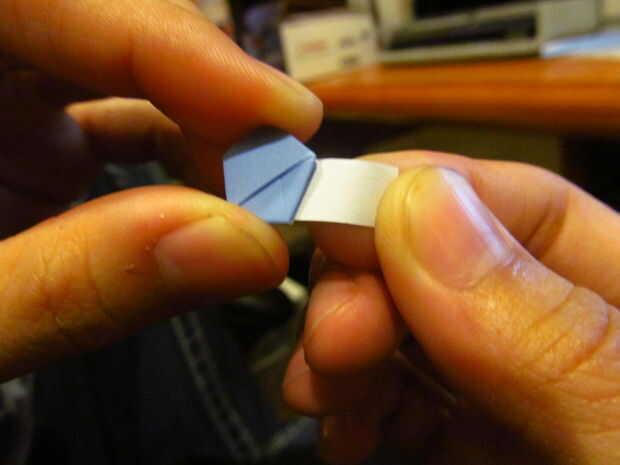 12. una vez que la tira de papel llegue hasta la parte más pequeña, sacar la parte un poco.