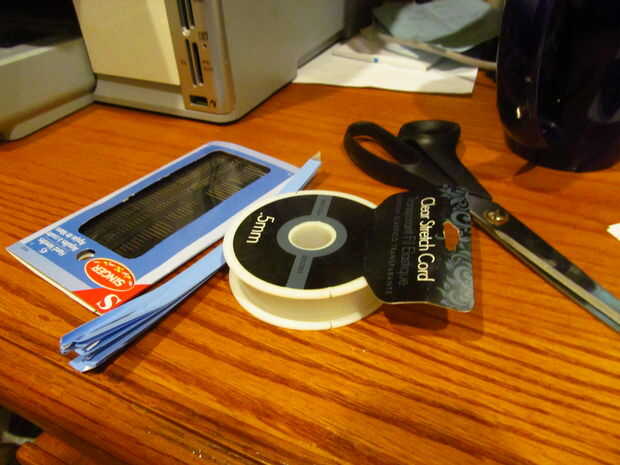 1. conseguir agujas, tijeras, claro cordón elástico y tiras de papel