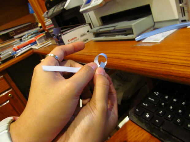 5. coge la parte sobrante de la tira de papel y ponlo a través del lazo