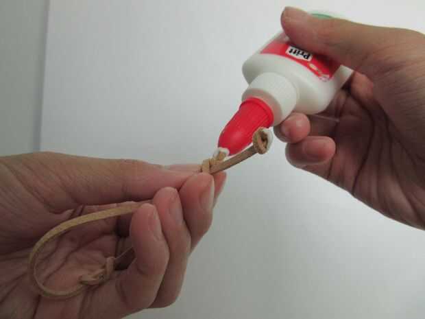 Usted puede utilizar pegamento para asegurar los nudos, pero con gamuza, realmente no hay necesidad.