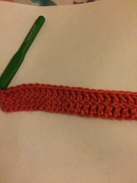 Hacer un crochet doble en la segunda cadena del gancho, un crochet doble en las cadenas restantes. Cadena 2, girar a su trabajo.