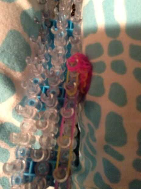 Esta es la pulsera como se verá cuando esté terminado. Yo recomiendo usar 3 colores diferentes para esta pulsera. Antes de poner las bandas en el paso siguiente Asegúrese de que doble todas las bandas, si crees que me refiero a hacer una banda de la