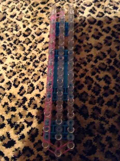 Esta es la pulsera como se verá cuando esté terminado. Yo recomiendo usar 3 colores diferentes para esta pulsera. Antes de poner las bandas en el paso siguiente Asegúrese de que doble todas las bandas, si crees que me refiero a hacer una banda de la