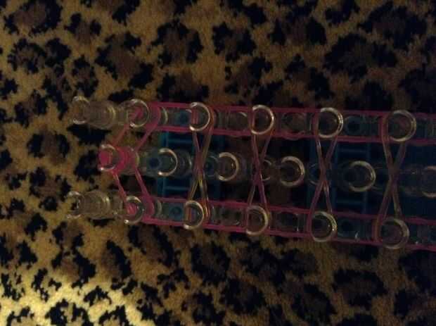 Esta es la pulsera como se verá cuando esté terminado. Yo recomiendo usar 3 colores diferentes para esta pulsera. Antes de poner las bandas en el paso siguiente Asegúrese de que doble todas las bandas, si crees que me refiero a hacer una banda de la