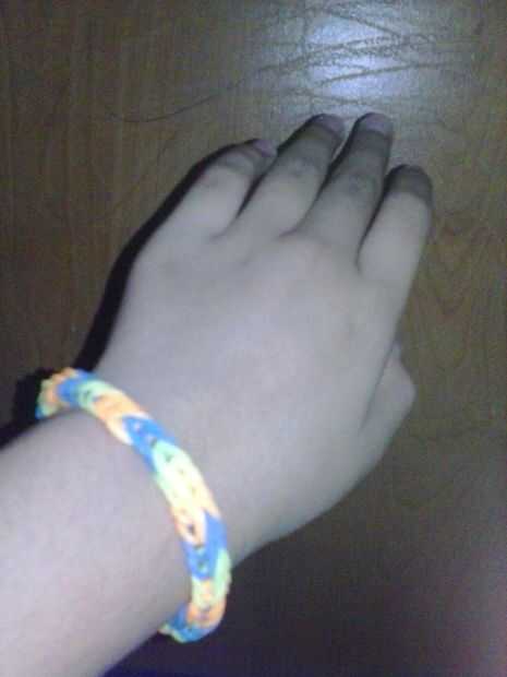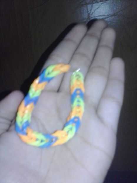 esto es como se verá cuando termine.Paso 1: Primero gire la banda de goma como esta.Paso 2: a continuación, agregue dos bandas más.Paso 3: Luego hacer esto.Paso 4: Luego colocar otra banda.Paso 5:Luego solo seguir haciendo lo mismo entonces parar y c