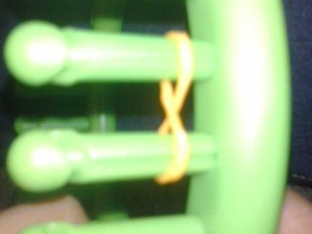 Paso 1: materiales: Necesita...Un kit de telar del arco irisBandas de gomaGancho telar de arco irisClip C o S clip :)Paso 2: Hacer la pulsera: Tomar una banda elástica y tuérzalo alrededor de dos clavijas que telar.Paso 3: Una vez que tengas la goma