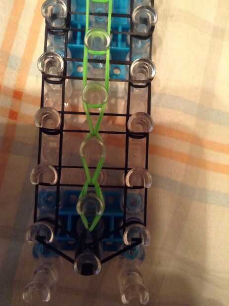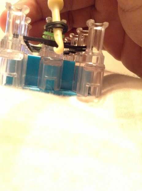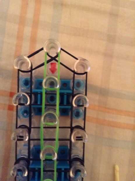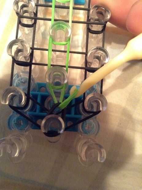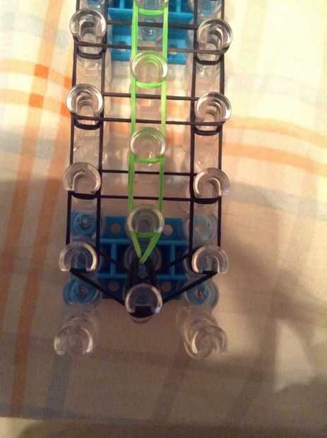 Tomar su gancho y deslícelo debajo de la banda que capsula hiciste y agarrar la tercer banda y lazo sobre a la siguiente banda. Así como en la imagen.