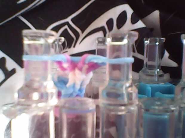 Paso 1: materiales: Necesita...Un kit de telar del arco irisBandas de gomaGancho telar de arco irisClip C o S clip :)Paso 2: Hacer la pulsera: Tomar una banda elástica y tuérzalo alrededor de dos clavijas que telar.Paso 3: Una vez que tengas la goma