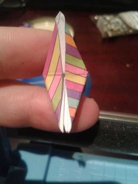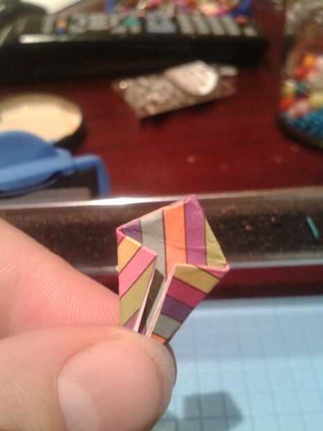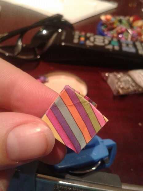 Primero hice una pulsera con cuadrados de origami hace un tiempo, pero era diferente a este. Las plazas se dio vuelta y Unidas por una cadena. Después se rompió (la cadena quebró), quería hacer uno nuevo, pero no exactamente lo mismo. Finalmente se m