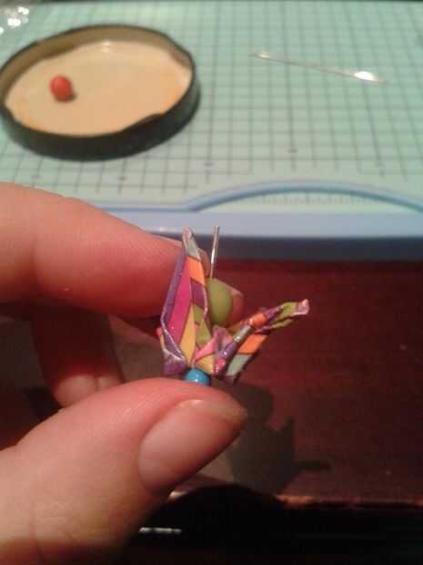 Ya debe tener un agujero en la grúa de la clavija en la etapa media de Gel para el perno de cabeza plana ir a través. Para ocultar el orificio en la parte superior pone otro grano (o dos dependiendo de su preferencia) en la parte superior.