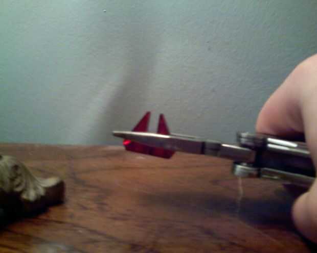 Agarrar una pieza con las pinzas y fingir que es the Incredible Hulk!!!!!! SMASH GRRRR!!!!!! YEP. A aplastarlo. Tenga cuidado sin embargo, fragmentos de plástico pueden volar por todas partes; se sugiere la protección de los ojos. Una vez roto, los imanes que es probable que se adhieren a sus alicates. Como elementos magnéticos.