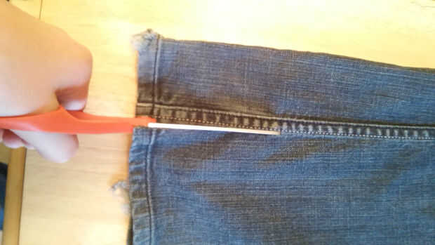 Corte la costura hasta la rodilla, unos 20" de largo.