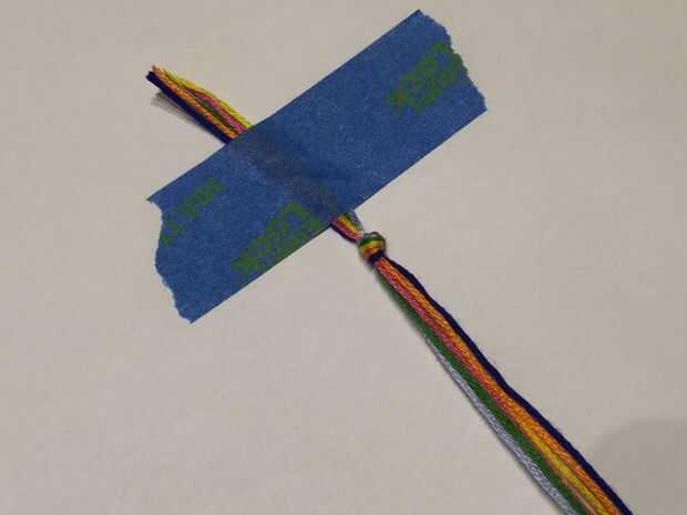 he elegido 3 colores: azul, verde y amarillo. Pero usted puede en cualquier lugar entre 3-8 colores (teniendo en cuenta que los colores más eliges cuanto más gruesa sea la pulsera). Cuando se hace debe este aspecto:Paso 1: Cómo empezar: Comenzar cu