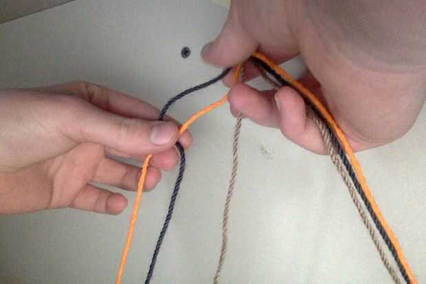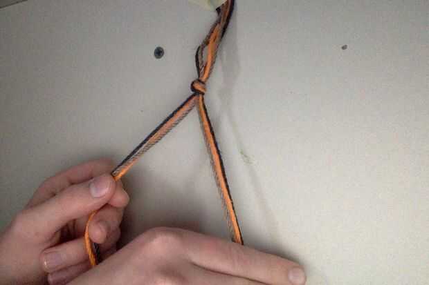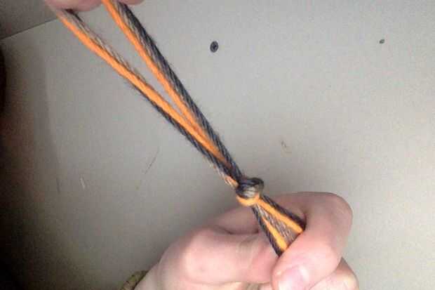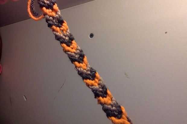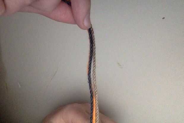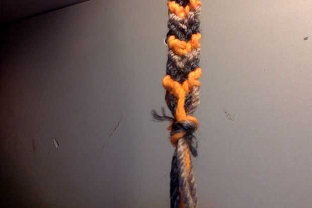 una pulsera bastante sencillo que sólo requiere 1 nudo. Utilicé 4 colores (1 azul, rojo 2, naranja 3, amarillo 4) pero se puede elegir en cualquier lugar entre 3-8 colores.Materiales que necesitas:-Cadena (a veces llamada seda en tiendas de artesaní