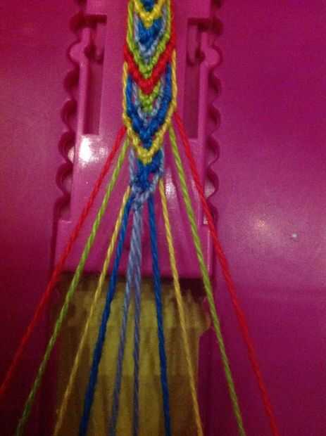 Una vez que han pasado todos tus colores para que las cadenas de #2 ahora son las cadenas de #1, la cadena #3 (usted se estar saltando un color) en el lado izquierdo y nudos hacia adelantados todo el camino hasta el centro.