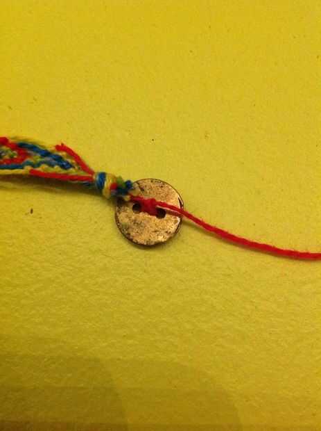 Foto #4-hacer 2-4 nudos para asegurar el botón sobre la cuerda y cortar el exceso de cordel.