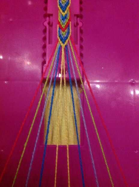 aquí es cómo hacer un cordón trenzado de pulseras de la amistad y otros usos - haciendo uso de un disco de trenzado de cardbaord.