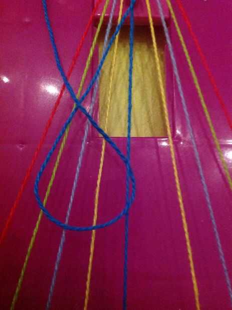 Una vez sus colores #2 al lado del otro, tome la cadena derecha, uno que sólo estaba trabajando y hacer un nudo hacia adelante en la cadena izquierda. Se acaba la primera fila!