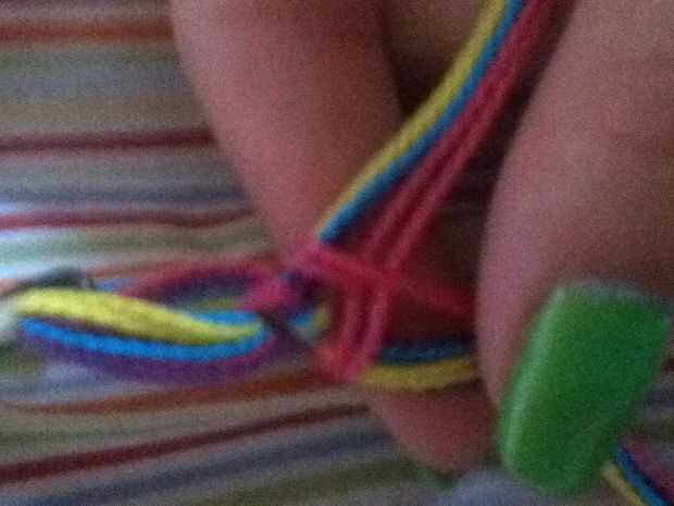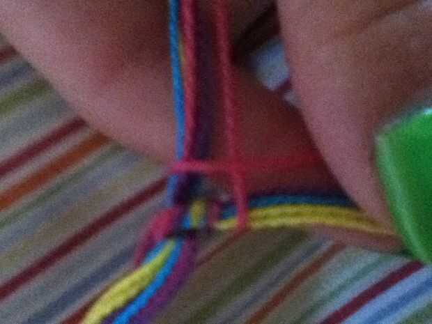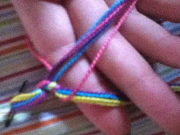 si triple trenzado es dominado sin obstáculo alguno, este diseño de pulseras de amistad fácil será ser agarrada, sin duda, a corto plazo; la sutil diferencia entre trenzado triple común y este diseño es tejer un cordón en cuando echó a un lado de la