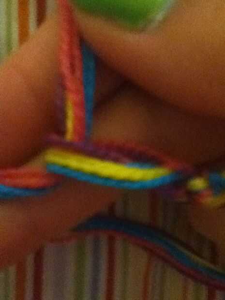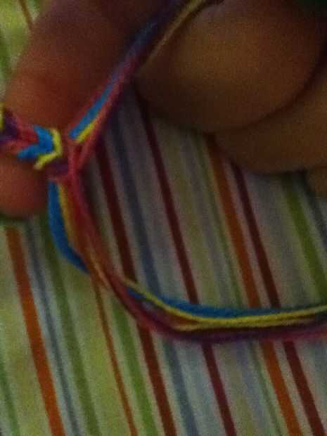 si triple trenzado es dominado sin obstáculo alguno, este diseño de pulseras de amistad fácil será ser agarrada, sin duda, a corto plazo; la sutil diferencia entre trenzado triple común y este diseño es tejer un cordón en cuando echó a un lado de la