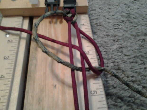 esto es muy similar a la pulsera de la armadura de popular cobra puedes ver cualquiera de los menores.Paso 1: Lo que usted necesita Necesita 2, 6" de colores diferentes de paracord de 550 lb.EncendedorTijerasPaso 2: Hacer el lazo Ahora es el momento