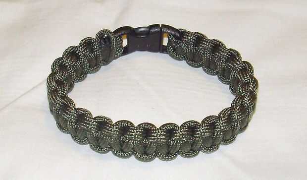 una pulsera de la cuerda de paracaídas contiene entre 10 y 25 pies de cuerda de paracaídas o paracord. Cuerda de paracaídas fue hecha durante la 2ª Guerra Mundial y ahora es popular en el mundo civil y militar. Pulseras de cordón de paracaídas se pue