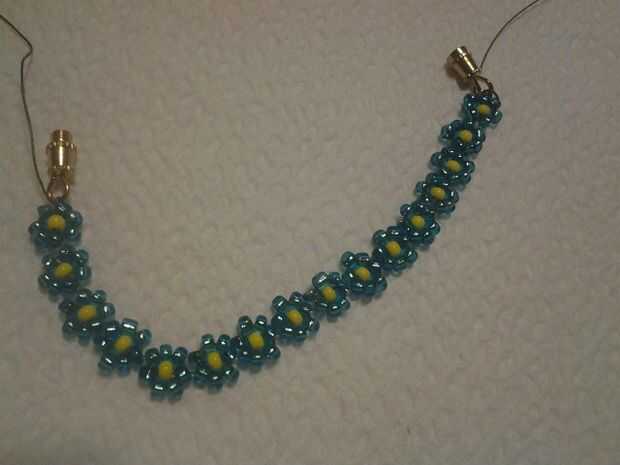 cómo crear una pulsera de flor hermosaPaso 1: lo que necesitará 1 dos piezas de alambre a mano2. Perls azul, negro y transparente3 seis círculos de joyería4.A broche de cualquier tipo5. alicates para cortar doblar y apretar6. hilo de nylon de 6lbPaso