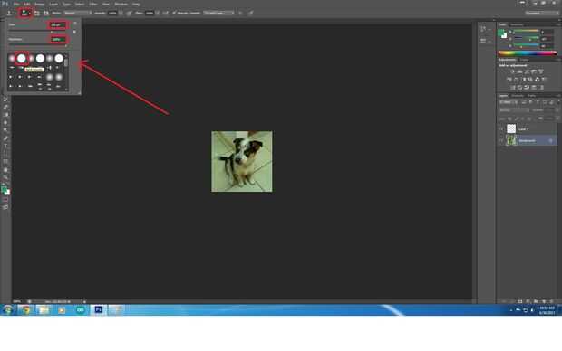 Seleccione la herramienta Tampón de clonar en la barra lateral. Luego ir a la barra de herramientas superior y selecciona el tamaño. Configurar el tamaño 208 píxeles por el tamaño de mi herramienta. Para ver el tamaño en que su cuadro fue volver a tamaño a e ir un par de píxeles mayor hasta la herramienta que se alinee con los bordes de la imagen. Luego ajustar dureza al 100% y seleccionar el cepillo redondo duro.