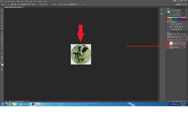 Haga clic en el capa que creó anteriormente y haga clic en el globo ocular en la capa con la imagen. Esto oculta la imagen para que pueda la herramienta en la capa en blanco (puede dejarlo y alinearla con la otra capa su hasta usted). Una vez su buena y centrada a la izquierda haga clic para aplicar la imagen a la capa. Ahora eliminar la capa que era la imagen original, hay que ir ahora debe tener un buen cuadro redondo (ver que no era demasiado malo). Ahora guarde el trabajo duro.