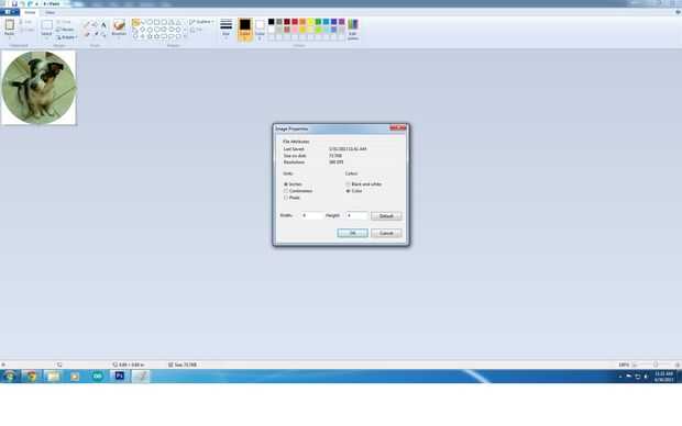 Abra la foto en paint y establecer las propiedades de tamaño 4 x 6 para imprimir a una fotografía estándar. Es importante para abrir la foto que estaba trabajando y no crear uno nuevo en la pintura y pegar la imagen en él; usted no tendrá 300 píxeles por pulgada, si haces eso.