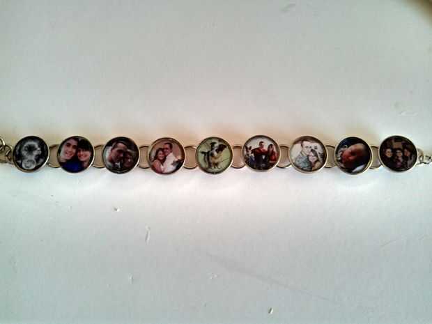 -Puedes usar un poco modge podge pegar los cuadros a la pulsera, no y deseaba que quisiera de pensamiento acerca de él. Las fotos se subieron en algunas áreas cuando epoxying.