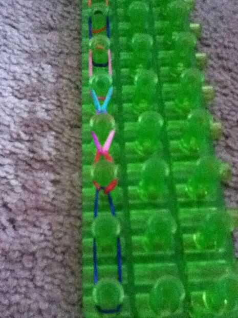 Paso 1: Permite iniciar colocando su primera banda en la clavija superior hacia la clavija a la izquierda.Paso 2: Ahora poner otra banda en la misma clavija superior pero esta vez hacia la derecha.Paso 3: Continuar con este proceso.Paso 4: Coloque su