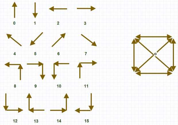 lo que utilizamos es un simplificado algoritmo de reconocimiento de gesto eficaz. Hemos subirlo a github, lo encontrarás aquí. Con el fin de mejorar la capacidad de reconocimiento, hemos definido 16 tipos de movimientos del gesto como se muestra en el gráfico, estos todos son gesto muy simple que es más fácil de recordar. Puede definir uno de los movimientos del gesto en el aparato eléctrico que se desea controlar de forma remota.