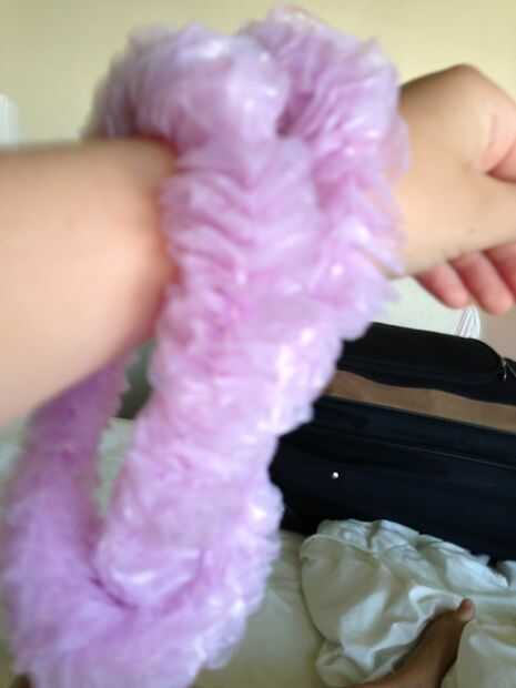 preparaciónTubería de plástico transparente, diámetro 6mmTubería de plástico transparente, diámetro 9mmCinta adhesivaPurlPerlas de coloresEmbudoTijerasPaso 1: Cortar tuberías de plástico diámetro 6mm con longitud igual a la muñeca.Paso 2: Cortar tube