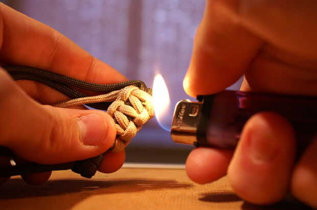 Paso 1: suministra Usted necesitará paracord cinta de agarre un clip y un pedernal de un encendedorPaso 2: Hacer la pulsera Reparar un lado de cada color a eachotgerPaso 3: Lo que Fit Cortar las piezas de paracord para el tamaño de tu manoPaso 4: Pon