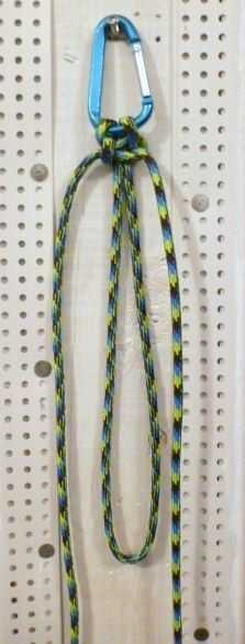 Opcional: colgar la pulsera por el carabinero, aún frente a usted, sobre un clavo dentro de altura de trabajo fácil de nuevo. Lazo de peso base con segundo carabinero y un peso modesto (sólo pesado suficiente para poder tire de los cables sin la pulsera de móvil).