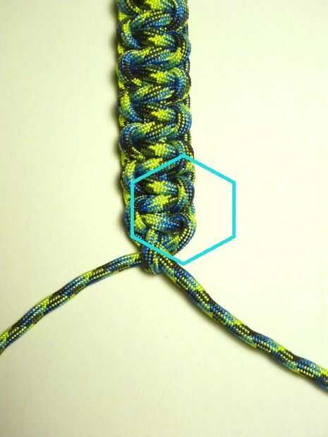 Observe las cuerdas parecen siguen el patrón de la pulsera hasta que entran en el bucle final.